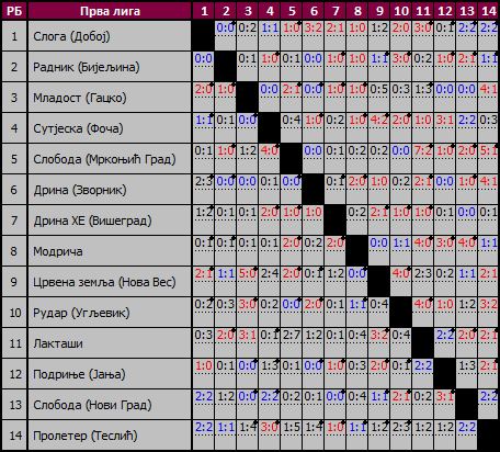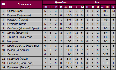 U statistici je prikazana tabela, učinak timova kod kuće i u gostima, rezultati svih utakmica koje su odigrane u ovom dijelu sezone.