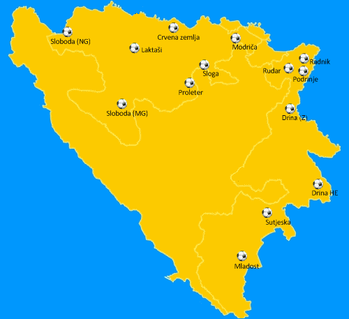 Lokacije gradova u kojima se igraju utakmice Prve lige RS