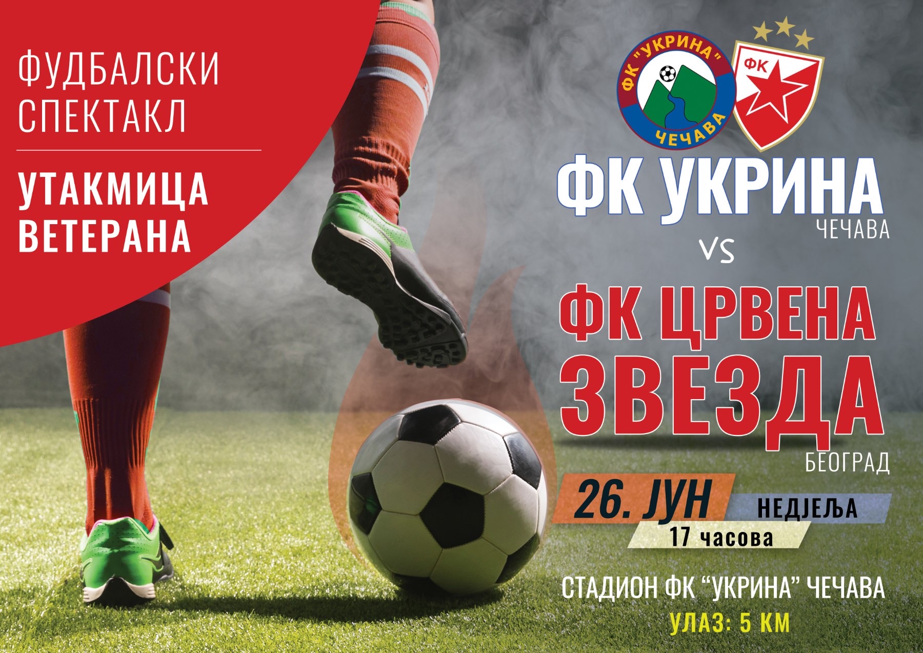 Početak utakmice zakazan je za 17:00 časova, a na terenu pored slavnih fudbalera beogradskog velikana koji su svojim potezima i majstorijama mamili uzdahe svih nas prateći utakmice pored TV ekrana, imaćemo priliku da u dresu Ukrine uživamo u potezima igrača koji su nastupali za ,, 4. jul “ iz Čečave, klub koji je osnovan 1982. godine, a da bi 1997. godine na inicijativu mještana Čečave, Rastuše i Ukrinice promijenio ime u FK ,, Ukrina “, kao i u potezima igrača koji su kroz 40. godina postojanja kluba u Čečavi ostavili upečatljiv trag na zelenom terenu.