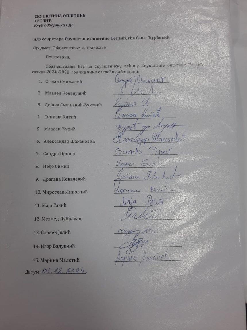 TESLIĆ - U Tesliću je danas održana konstitutivna sjednica, a većinu će ponovo imati blok okupljen oko SDS-a.